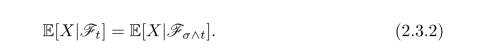 引理2.3.1 设σ是停时,t≥0,X是Fσ可测的可积随机变量,那么