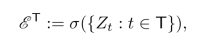 现在我们来说明从等价的意义上说,随机过程(随机映射族)可以表示为状态空间的无穷乘积空间上的概率测度.固定ω∈Ω,tXt(ω)是T到E的映射.故我们需要考虑T到E的映射组成的空间.用ET表示从T到E中的映射x=(x(t):t∈T)全体组成的集合,ET中的元素有时也称为轨道,而ET通常称为轨道空间,它实际上是E的T次自乘的乘积空间.对于x∈ET,令Zt(x):=x(t),它是ET到E上的投影,也称为坐标算子,因为x(t)也称为x在t处的坐标.令ET是ET上让所有投影{Zt:t∈T}成为可测映射的最小σ-代数,即