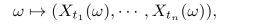 回过头再看看随机变量,如果ξ是(Ω,F,P)上n-维随机变量,分布为μ,它实际上是P在ξ下的像,而在概率空间(Rn,B(Rn),μ)上定义随机变量I(x)=x,那么I的分布也是μ.这说明什么呢?说明一个分布可以由状态空间Rn上一个给定的随机变量I实现.随机过程也是如此.