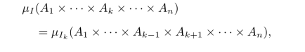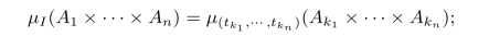 其中Ik:=(t1,···,tk-1,tk+1···,tn).也就是说当I⊂J都是T的有限子集时,μI是μJ的在对应分量上的边缘分布.