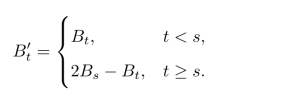 证明B′=(B′t)也是标准Brown运动.实际上B′是将B在时间s处之后的轨道沿着直线y=Bs反射所得到的.