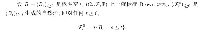 它表示Brown运动B=(Bt)t≥0直至时间t的历史.加入所有零概率集之后记为(Ft).