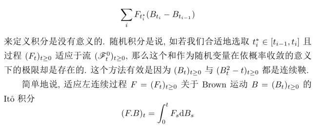 仍然是一个随机过程,当有限分划趋于零时,对于任何固定的t,它是下面特殊的Riemann和的极限: