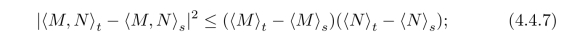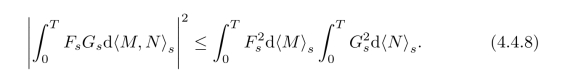 取极限推出不等式对于可测的随机过程F,G成立.这个不等式与概率无关,因为它是对轨道成立的.对这个不等式取期望,再应用Cauchy-Schwarz不等式推出下面的不等式,它被称为Kunita-Watanabe不等式: