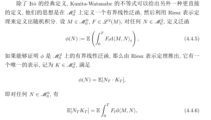 定理4.4.5 线性泛函φ的表示恰是随机积分F.M.