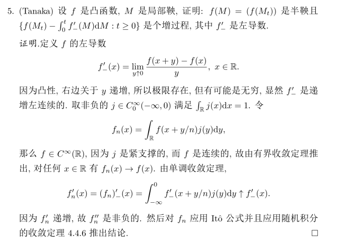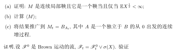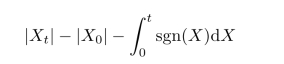 是增过程,其中sgn(x)=1{x>0}-1{x≤0}是绝对值函数的左导数,因此〈|X|〉=sgn(X)2.〈X〉=〈X〉.如果X是Brown运动,设|B|的鞅部分是M,连续增过程部分是L,那么〈M〉t=〈|B|〉t=〈B〉t=t,因此由L´evy的刻画,M是Brown运动.由公式,B2=|Bt|2=2|B|.|B|+t,因此|B|.|B|是连续鞅,推出|B|.L=0.证明了对几乎所有的轨道,dLt的支撑包含在集{t:Bt=0}中.