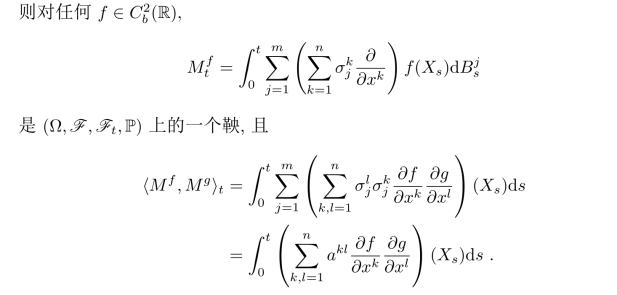 定义6.5.1 设L是C∞(Rn)上线性算子,(Xt)t≥0是(Ω,F,Ft,P)上连续随机过程,那么我们说(Xt)t≥0与概率测度P一起是L-鞅问题的解,如果对任何f∈C∞b(Rn)
