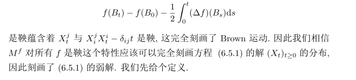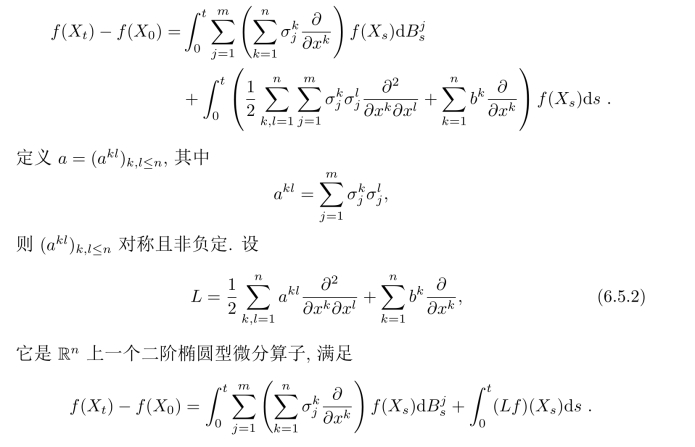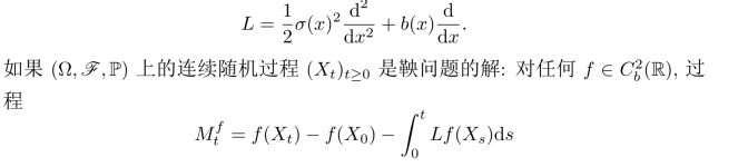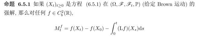 因此方程(6.5.1)在概率空间(Ω,F,P)上的强解(Xt)t≥0是L-鞅问题的解,其中L由(6.5.2)给出且
