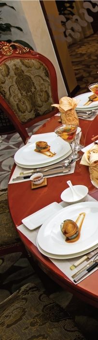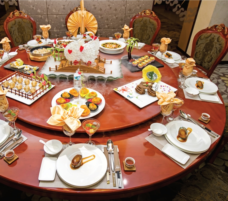 在“创新不忘本,传承不守旧”的思想指导下,“幸福点心宴”从开始就注重原生态和健康的选材原则,在工艺上更大胆创新,用工匠精神做好每款出品。“金镶玉呈福满堂”选用上等白萝卜,通过切配雕刻成型后,再运用煲、浸、等烹调方法,将一种平平无奇的食材烹制成像生鲍鱼,其荤素相宜,色泽明亮,味道鲜美嫩滑。整台点心宴摆盘时尚高雅,使一贯只作为茶点的点心,突破了传统而登上筵席,成为名副其实的点心宴席。