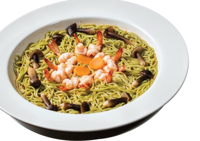 高筋面粉、鱼蓉、菠菜汁、明虾