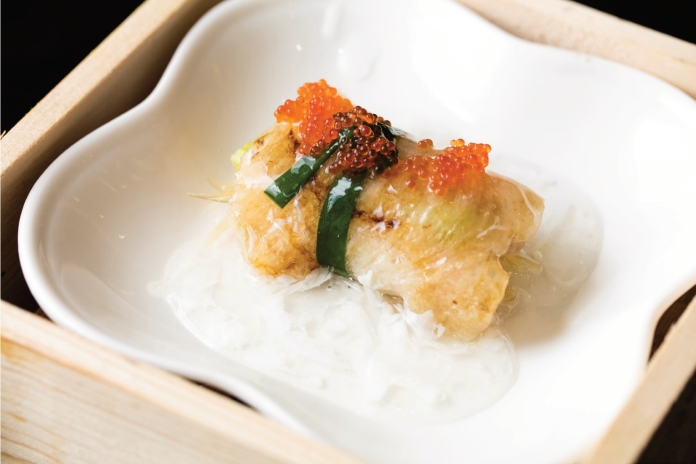 4.蒸熟出笼后,淋上清鸡汤蛋白芡即可。