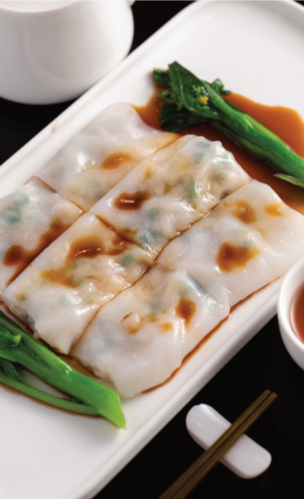 3.取一张干净的白纱布倒入薄薄一层拌好的米浆后,铺上肉馅、蔬菜、调味料加盖蒸熟,用刮胶片将蒸好的肠粉刮出,卷成长条分段切好上碟即可。