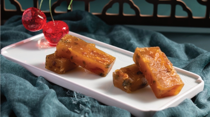 3.将调制好的糊浆倒入糕盘,用中上火蒸制约20 分钟至熟取出,待完全冷却即可。
