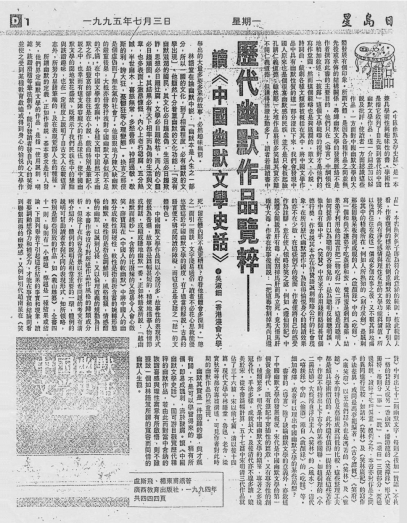 《中国幽默文学史话》是一本兼具学术性和趣味性的书。学术性是指它叙列了自先秦到当代的中国幽默文学作品,逐一介绍并加以解说及批评,使读者一方面认识这些作品,一方面对中国幽默文学的大体发展有个印象。所谓大体,是因为各种作品之间并无先后或承传的结构关系,寻绎幽默文学的发展脉络不是作者撰写此书的主要目的,他们只在《导言》中纲领性稍加叙述,“披露”这个文学范畴的视野才是他们的写作意图。然而这个范畴也是够广阔的,散文、小说、诗词曲、戏剧各种文类都被概括在其中。将中国文学作品中具有幽默性质的这一部分澄汰下来,我们会发现中国人原来也是个很富幽默感的民族,并不是只会板起脸孔讲仁义道德;虽然那一大堆作品里很多笑话其实亦离不开仁义道德,但讲得活泼生动多了,读者若细读书中举出的大量多姿多彩的故事,必然趣味无穷。