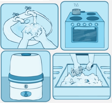 至少在“宝宝兵”一岁之前,由于免疫系统尚在发育,他们的奶瓶和安抚奶嘴均需消毒。