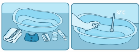●在浴盆内先加凉水,再加热水。洗澡要用温水。可通过温度计或肘部试温来确保合适的温度(约37℃)。