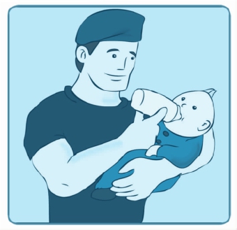 6.“宝宝兵”吃完奶后,轻轻地为他拍嗝。