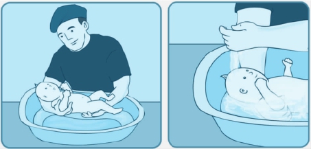 ●保持脐带干燥。在脐带未脱落前,不要将“宝宝兵”全身浸入浴盆,擦浴即可。