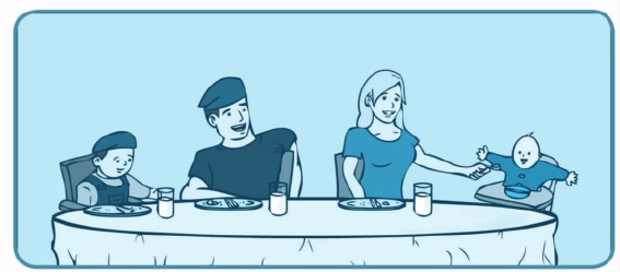 ●让“宝宝兵”坐在餐椅里吃饭,为以后吃饭时待在餐桌前打下基础。