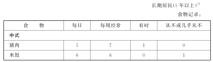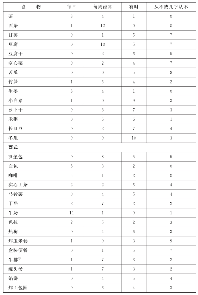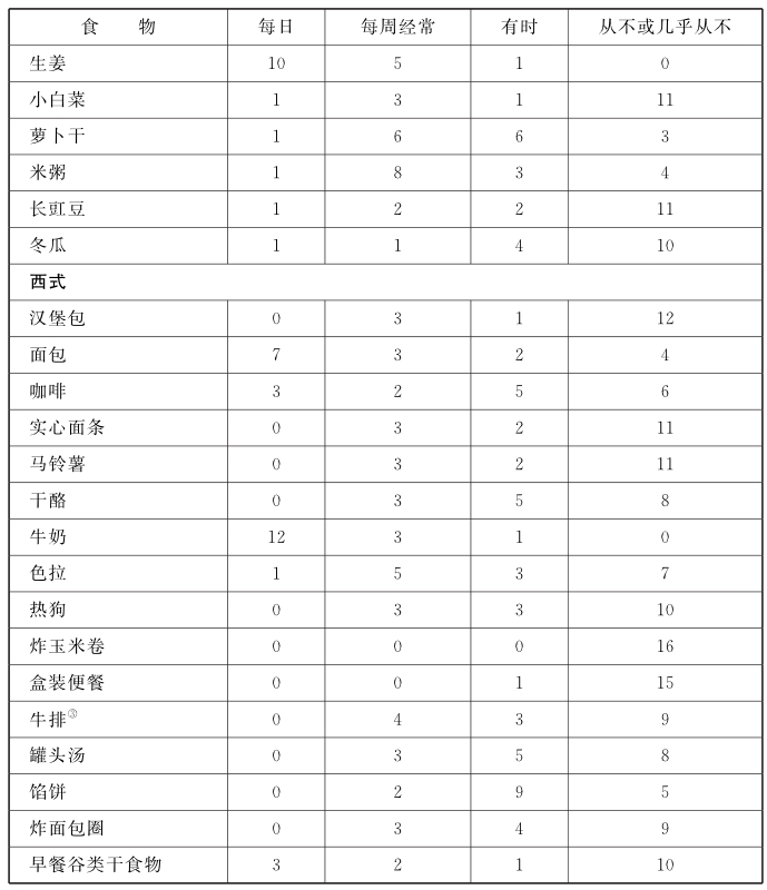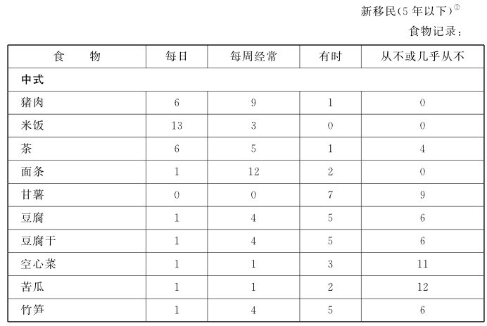 [6]表1:加利福尼亚州河畔地区华人居民食用的西式和中式食物