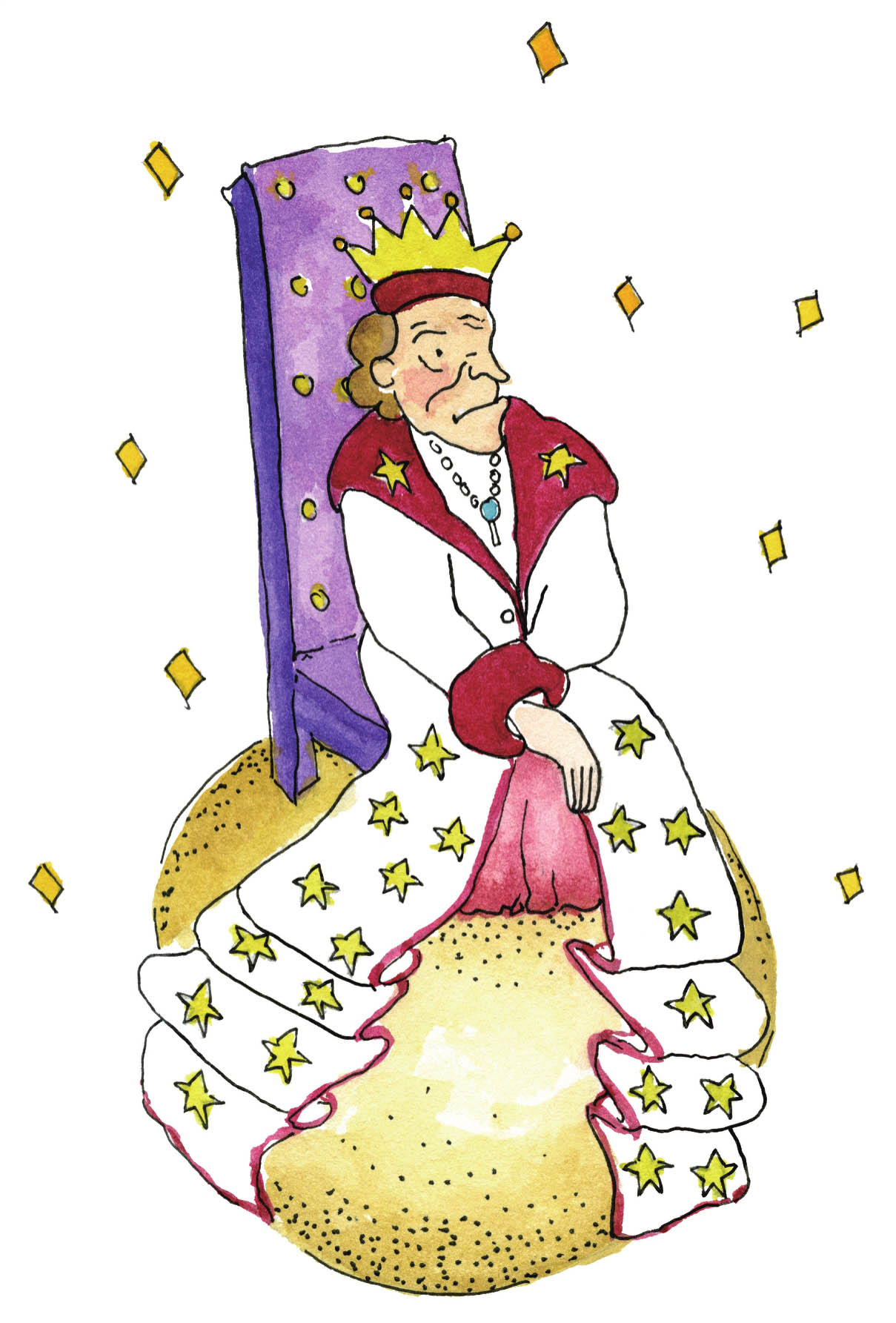 “我可以坐下来听您说话吗?”小王子腼腆地请示着国王。