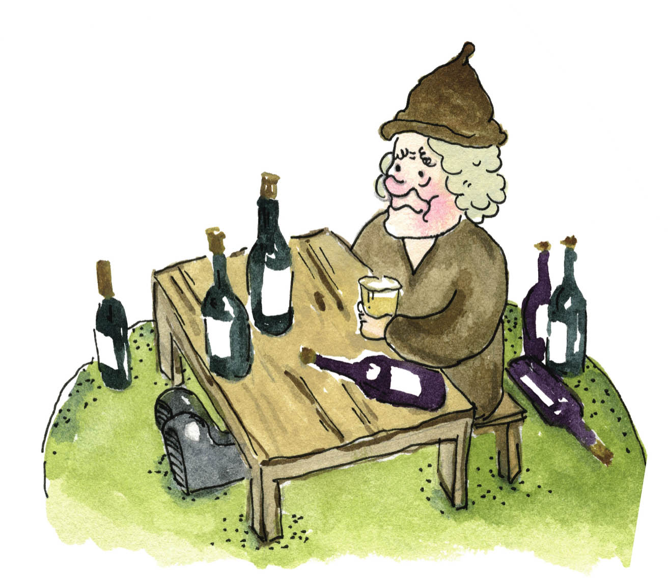 小王子到达这颗星球的时候,看到酒鬼正呆坐在那里,面前摆放了一大堆酒瓶,有的装着满满的酒,有的则是空的,有的被扭开了瓶盖并翻倒在地,酒流得满地都是……