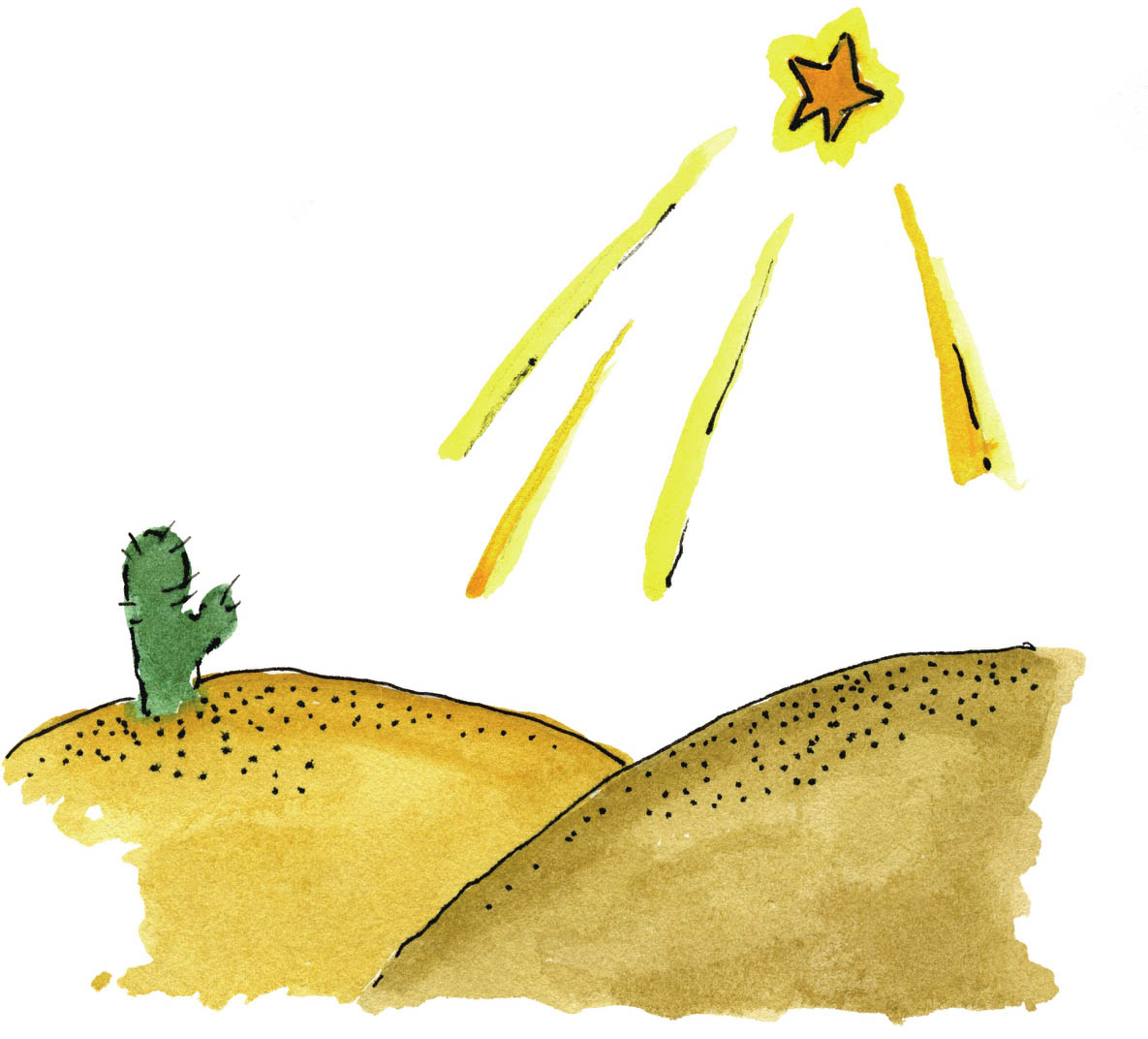 假如在某一天你们到非洲的撒哈拉沙漠旅行,因为你们知道了这个故事,便能够很准确地辨认出故事发生的地方。要是你们真的有机会找到这个地方,请不要匆匆离去。你们可以在那里待上一会儿,特别是在那星光灿烂的夜空下停留片刻吧!没准在这个时候,就会有一位面带温柔笑容、有一头金色鬈发的小男孩走向你,并向你问好,而且当你问他问题时他不会回答,那么,你就一定能够猜得出他是谁了。要是真的有那么一天,你见到了他,就请你给我一些抚慰,快快给我捎来这个消息,告诉我:“小王子回来了……”