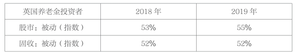 在日本,全球最大的养老基金——政府养老投资基金(资产管理规模:截至2019年3月底为159万亿日元,约10万亿元人民币)在2018财政年度末约77%的资产为被动投资,而这个比例在2001财政年度仅为50%。