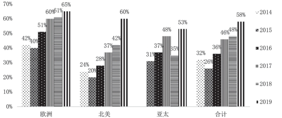 从区域分布看,全球范围内资产管理机构对于Smart Beta策略的接受度进一步提升,由2018年的48%提升至2019年的58%。亚太地区的接受度也首次超过了50%。