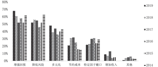 从图3的调查统计中可以看出,全球机构投资者使用Smart Beta策略排名前三的原因分别是增强回报、降低风险和提高组合多元化程度。此外,Smart Beta策略在节约成本方面的优势受到投资者越来越多的重视。