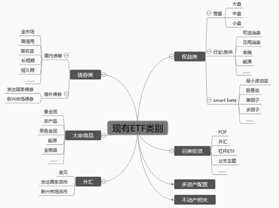 经过多年发展,权益、债券ETF发展出了宽基、行业∕板块、策略(Smart Beta)各种类别,为市场提供了高流动性、低费率、低门槛的投资工具。商品、外汇、杠杆ETF则满足了差异化投资需求。