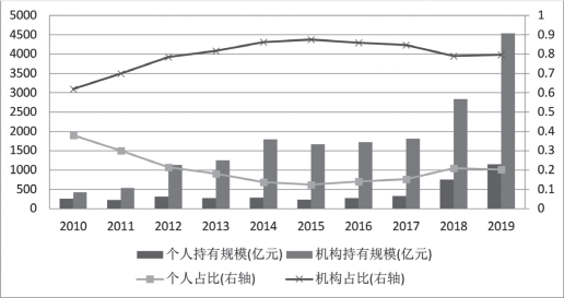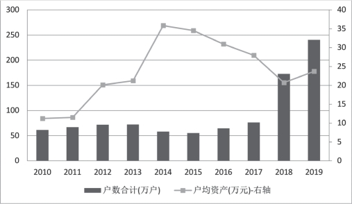 图9 2010年—2019年ETF的持有人户数与户均资产