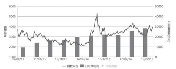 图1 沪深300指数过去股价和盈利走势图(2009.8—2019.2)