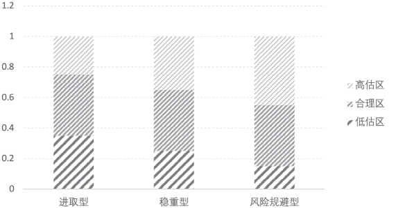 图3 进取型、稳重型、风险规避型估值区域划分示意
