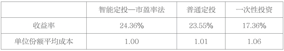 在本例下使用市盈率法进行定投的收益率达到了24.36%,在普通定投的基础上收益率进一步上升。