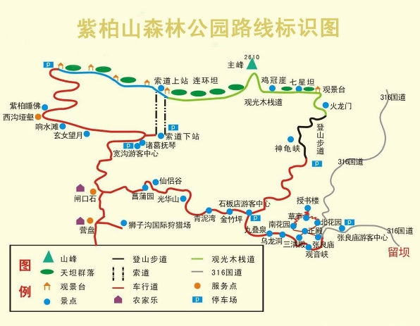 陕西留坝县位于秦岭南麓腹地,面朝巴蜀,背倚秦川,是汉中的北大门,总面积1970平方千米;境内山清水秀,森林覆盖率86%,植被覆盖率达到92%,林冠西北第一县,年平均气温11.5℃。“萧何月夜追韩信”“明修栈道、暗度陈仓”“英雄神仙张良庙”都是留坝县紫柏山为汉语言贡献的历史名典。紫柏山系秦岭主峰太白山东南方向支脉,山势巍峨壮观,山上古树多紫柏,故名紫柏山。其山势巍峨、蜿蜒起伏、状如游龙,故紫柏山又名“龙如山”。此地雨量充沛、气候爽朗;草木葱茏,苍翠欲滴;山顶云雾缭绕,山下溪水淙淙,青山绿水,风景如画。自然风光与人文景观在这里完美结合,悠久的人文历史和神秘的自然景观赋予紫柏山厚重博大的自然与文化双重价值。留坝县的名称不知与张良的封号——留侯是否有关?不过,游览一下留坝紫柏山就能理解为什么张良要选择这里作为“功成名就”后人生的最后归宿。张良庙恐怕是“人法地”的精彩演义,紫柏山或许更是天之道的深沉召唤。