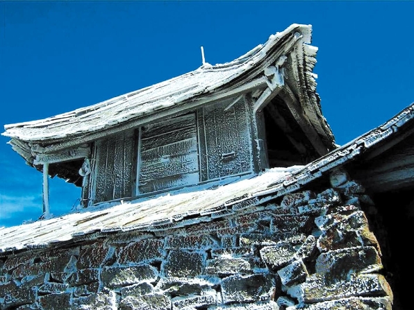 在山顶的一些阴坡洼处,你仍会看见分片的积雪——在夏季惊奇这冬天使者。而勇于挑战的登山者,时不时会遇见天色大变、飞雪来袭。去岁残冰犹未消,新雪片片冷夜落。寒帐无火相拥暖,六月恍如铁马年。