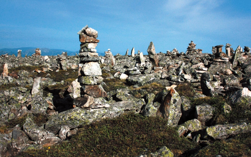相信爬过太白山的人有一个共同的震撼,那就是漫山遍野的巨石方阵,有倾泻于一面山坡的,有沿沟谷成带状的,有在山巅夷平面的,绝大多数巨石都是一人高左右,它们不经意地横陈在一起,空隙足可容人,山坡之上的巨石随时都可移位或者崩塌,没有任何植被甚至苔藓地衣,让人们感受到一个触目惊心的绝境。这些都是缘于冰川的作用。