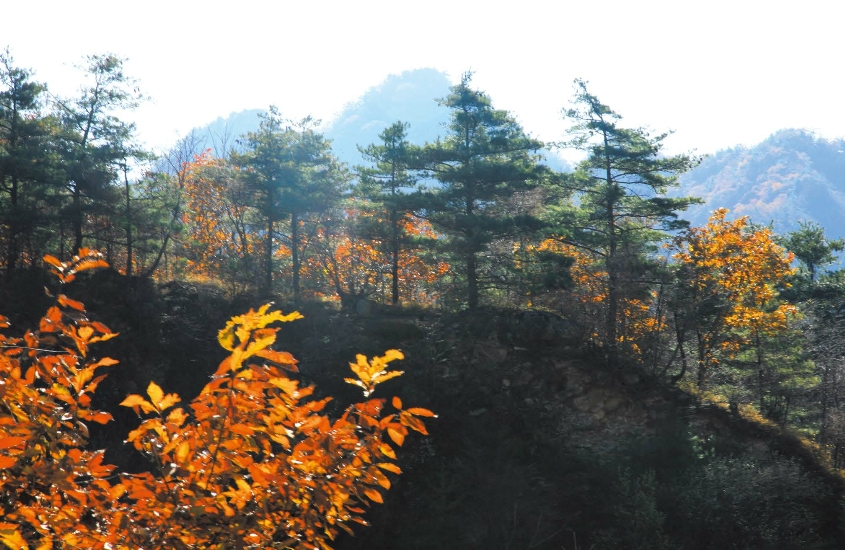 栓皮栎林分布于海拔800~1300米之间,在垂直分布与水平分布方面均较宽广。由于长期人为活动,这一带浅山凡可耕者皆已垦作农田,但仍在难以垦作的地段保持有相当部分的栓皮栎林。