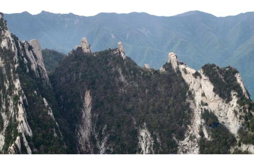 现代地理学对包括华山在内的秦岭造山带的认识无疑取得了长足进展,以下为最一般性的自然地理描述。在陕西省境内,整个秦岭划分为以太白山为中心的西秦岭、以终南山为中心的中秦岭和以华山为中心的东秦岭。华山是东秦岭的中心和标志,西起蓝田与渭南交界的箭峪岭,东至陕西潼关与河南省交界的西峪河。从行政区划看,东秦岭即蓝田以东的渭南地区及对应的秦岭南麓山地。从高度上看,太白山(西秦岭)海拔为3767.2米,终南山海拔为2604米,而华山海拔为2154.9米,西高东低,秦岭山势依然。从造山构造类型而言,秦岭属褶皱—断块型造山带:西秦岭的太白山主要显示褶皱性质,东秦岭的华山主要显示断块性质,与此相应,前者的岩相褶皱节理主要是横向(与大地平行)发育,后者则是纵向(与大地垂直)发育。也正由于造山类型与基岩性相的差异,华山的绝对高度虽然有限,山势却呈现无限峻峭之美,荣列五岳之首。若从南北纬度方向看,秦岭又可划分为北秦岭、中秦岭和南秦岭,北秦岭为加里东,中秦岭为华力西(东)印支期(西),南秦岭为印支期。“中生代陆内造山,北秦岭始于华力西,中、南秦岭为燕山期。”就陕西境内而言,从西秦岭的略—勉缝合带与东秦岭的商—丹缝合带之北,到秦岭正脊偏南即中秦岭区域;略勉带以南到汉中盆地、商丹带以南到商洛境南缘为南秦岭。秦岭正脊以北为北秦岭,“北秦岭为突变式活动带,南秦岭为渐变式活动带”(张二朋),华山的拔地突兀与南坡的和缓绵长即地貌见证。北秦岭华山是典型的花岗岩,中、南秦岭除花岗岩外,有众多的变质岩与灰页出露。由于从西秦岭而东的秦岭主脊线大致与蟒岭对应,远远落于主脊线以北的东秦岭华山至河南灵宝市一带山地,又被称为“小秦岭”。华山“小秦岭”是中国著名的黄金产区,西岳之“华”与此亦密切相关。