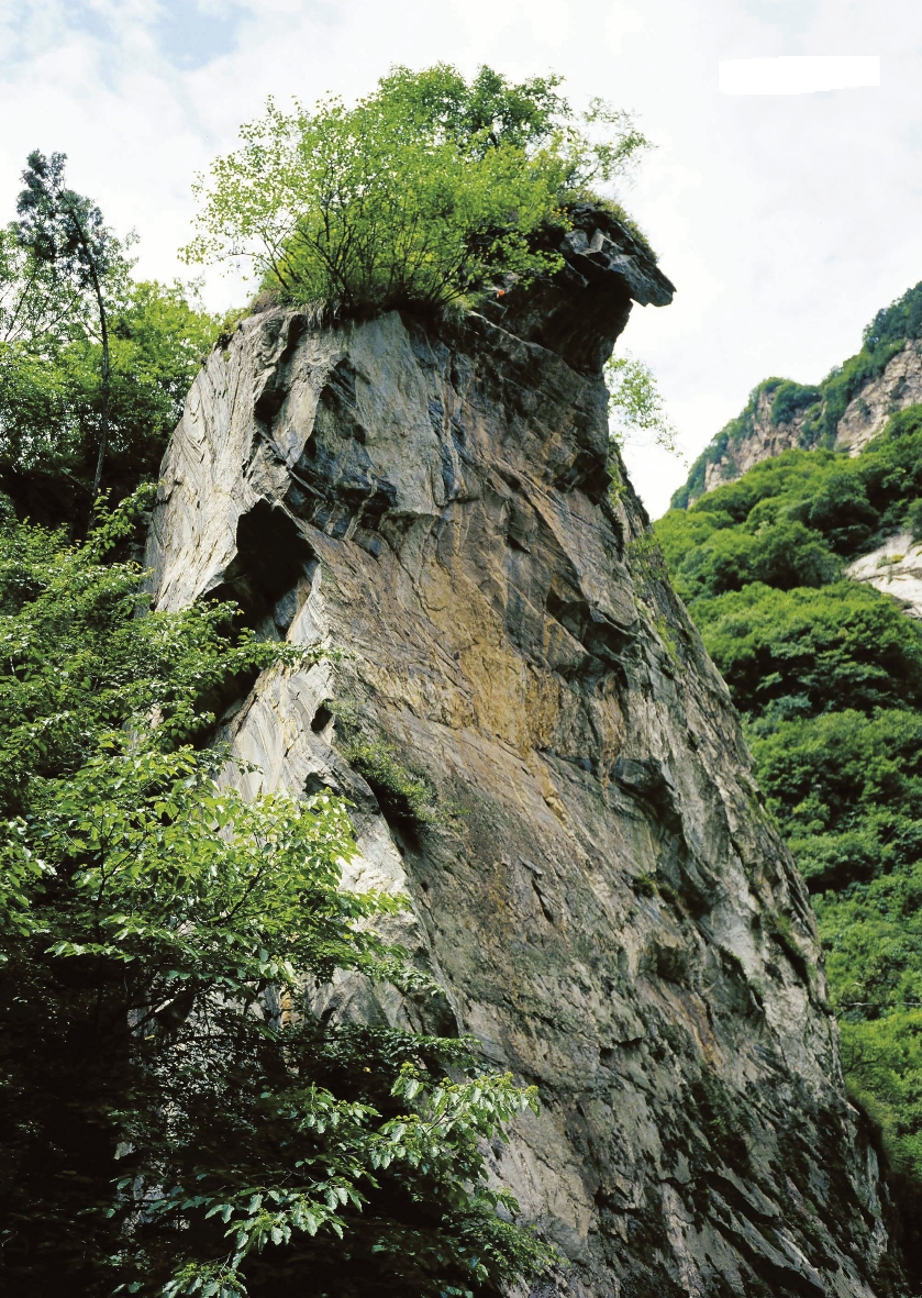 (1)剥蚀断块中山地貌。剥蚀断块中山地貌北以山前深大断裂为界,南至秦岭主脊,西起瓮峪左岸分水岭,东至杜峪和黄甫峪上游的右岸分水岭,地势南高北低。秦岭山脉呈东西向延展,区内发育着垂直于山脉走向的河流,较大的河流有瓮峪、仙峪、华山峪和黄甫峪等,所有河流都注入渭河。山地因经过漫长的地质史,构造运动复杂,岩浆活动频繁,变质作用强烈,断层剧烈,特别是新构造运动活跃,使华山形成了以花岗岩、变质岩为基础的中山地貌。塑造地貌的外营力有流水、块体运动和风化作用等,尤以流水作用最强。河流从发源地向下游随流量和流速的加大,流水的垂直下切、溯源侵蚀与搬运能力不断增大,华山又因处于降水高值区,故各条河流下游侵蚀能力很强,都形成了窄深的峡谷地貌。山前断层崖(>60度)受垂向沟谷的侵蚀形成了许多非常壮观的断层三角面;花岗岩和演变岩岩性坚硬,节理发育,受流水的下切作用,由秦岭主脊到山前断层崖,河间高地,地形陡峻,层峦叠嶂,大部分山峰都在1000米以上,构成了华山的中山地貌。