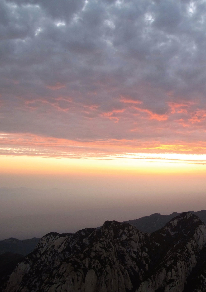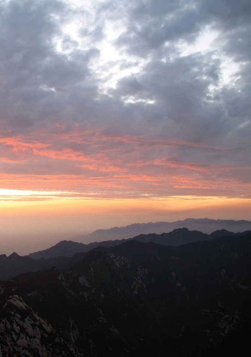 华山在秦岭的身躯里,我们说它是秦岭的花朵一点儿也不为过;它本来就是盛开的宇宙之花,是奥秘的天地之灵。华山乙庚相合,铺展着中华文化的彩绘符号。华山是秦岭走向中原的头面和名片;华山是秦岭的眼眸、风骨和气韵;华山似乎一直在摇曳着西岳的精微和灵魂。在中国文化里,天人感应的思悟者在秦岭的华山凭空临虚,感应天下之浩渺杳冥,也俯察江河胡汉的变迁端倪。这里是人与自然高妙深沉的交融地,智者一纵便上万丈之巅,又轻轻一落,重回人间沧桑之地。万物人事在华山的灵应台上上下下,也给了山岳绝好的注解。