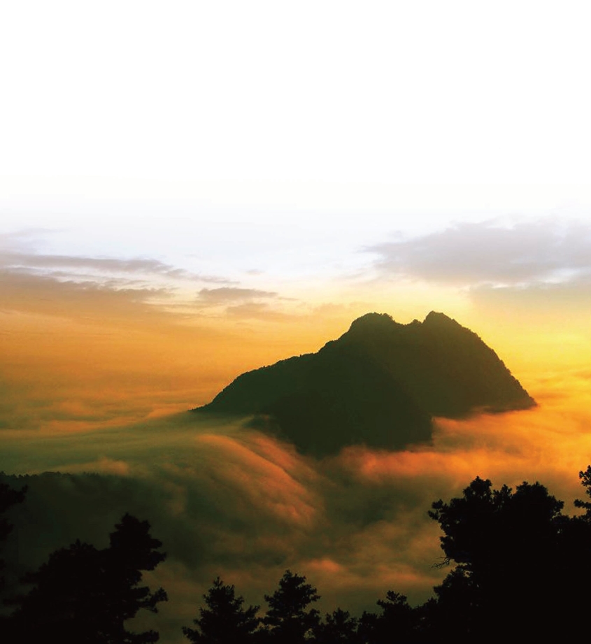 说真的,只要登上这“龙椅”,或坐或立,眼前尽是云海连绵、雾气蒸腾之景观。远方云霞明灭,仙山琼阁,于云雾往来间,身边峰林、大顶道观忽隐忽现,瞥一眼山脚下的群山和屋舍,偶尔显现的,可真是沧海一粟啊!伴着微风,对面云盖观传来阵阵风铃声,声音夹杂在一片松涛声中有如千军万马驰过一片原野,不啻昂首挺胸的王者马铃声。看这苍茫起伏的变迁,不舍昼夜东去的江河,云蒸霞蔚的日月,不禁感叹:人的一生似哪一缕云雾?哪一片霞光?又似哪一阵铃声?