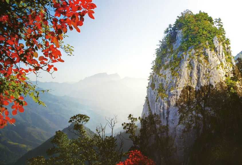 商洛市山阳县天竺山在经度上与关中华阴市华山相若,在纬度上相差可就多了。华山居于陕西关中平原的中轴线,东望黄河,脉气入中原;天竺山位于商洛市山阳县鹘岭,陕南之南,与湖北郧西相望。一北一南,华山和天竺山在纬度上的距离有一百多千米之遥吧。早在《禹贡》《山海经》等诸国学经典中,华山已是华夏的西岳圣山。山阳天竺山既处秦、鄂两省之汇,又是秦楚文化共育,兼之乾坤氤氲,雾绕云遮,真容甚为难辨。就说名称吧,先是牛山,又叫作天柱山,现在是天竺山——并以天竺山之名成功申报国家森林公园,2011年4月16日正式开园。