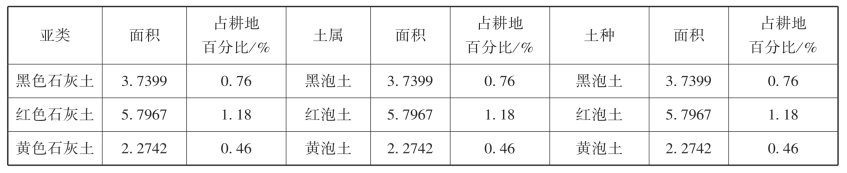 表2-79 石灰土亚类分类系统表 单位:万亩