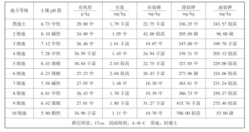 黑泡土养分情况:呈中性,有机质含量中,全氮含量丰富,有效磷含量丰富,缓效钾含量中,速效钾含量较高。