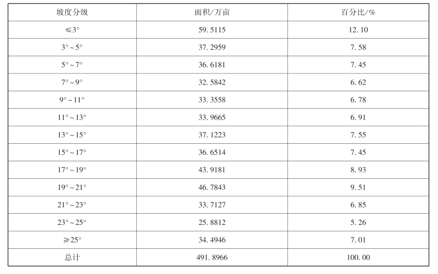 表3-2 耕地坡度分布表