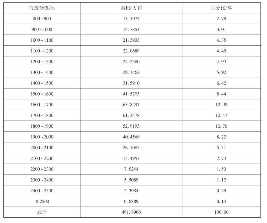 保山市耕地海拔范围为500~2900m。主要分布在1600~1700m,面积有63.8297万亩,占总耕地面积的12.98%。