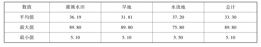 表4-1 耕地土壤有机质分地类含量表 单位:g/kg