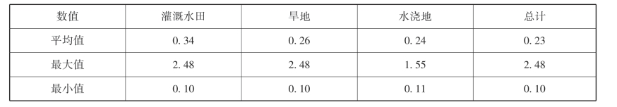 表4-22 耕地土壤有效钼分地类含量表 单位:mg/kg
